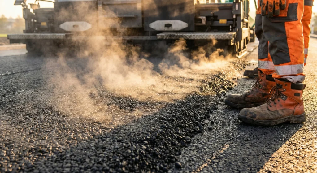Wir verbinden A mit B. Dauerhaft. Unsere Verkehrsflächen halten den Belastungen von Schwerlastverkehr und Witterung stand, damit Ihre Logistik und Erreichbarkeit gesichert sind.